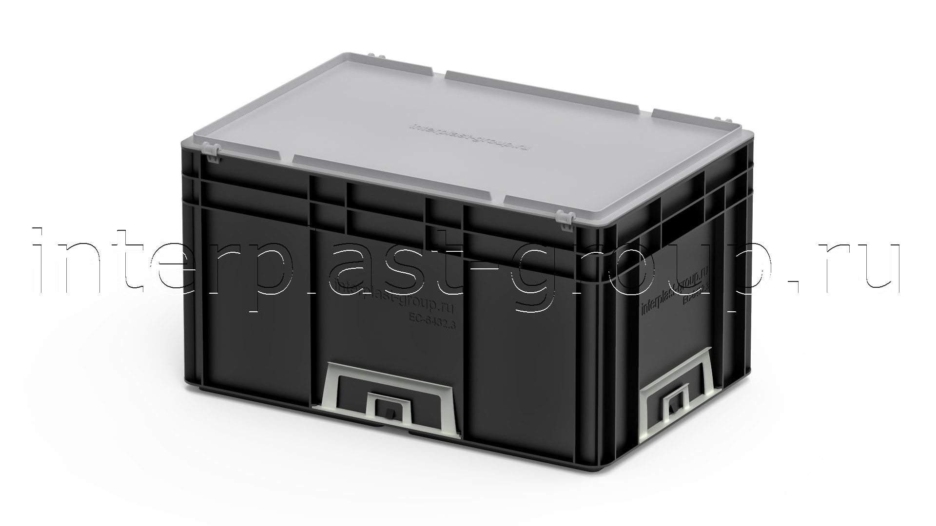 Евроконтейнер открытые ручки/усиленное дно (черный), 600x400x320 мм