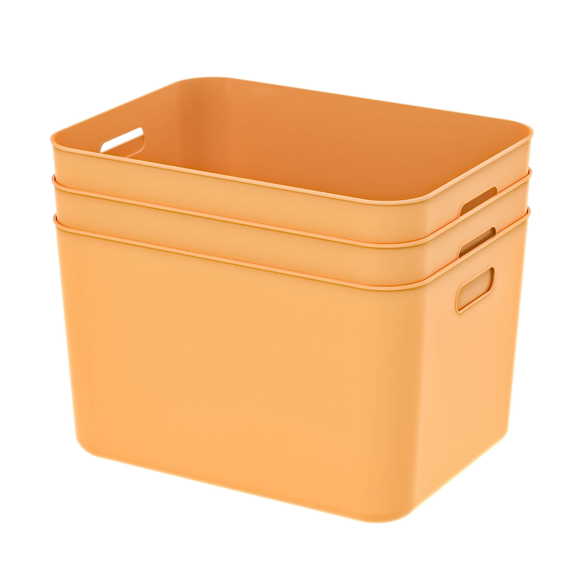 Благодаря вкладываемой конструкции, ящики можно компактно складывать при хранении, а с крышкой их легко штабелировать. Открытые ручки обеспечивают удобную транспортировку.