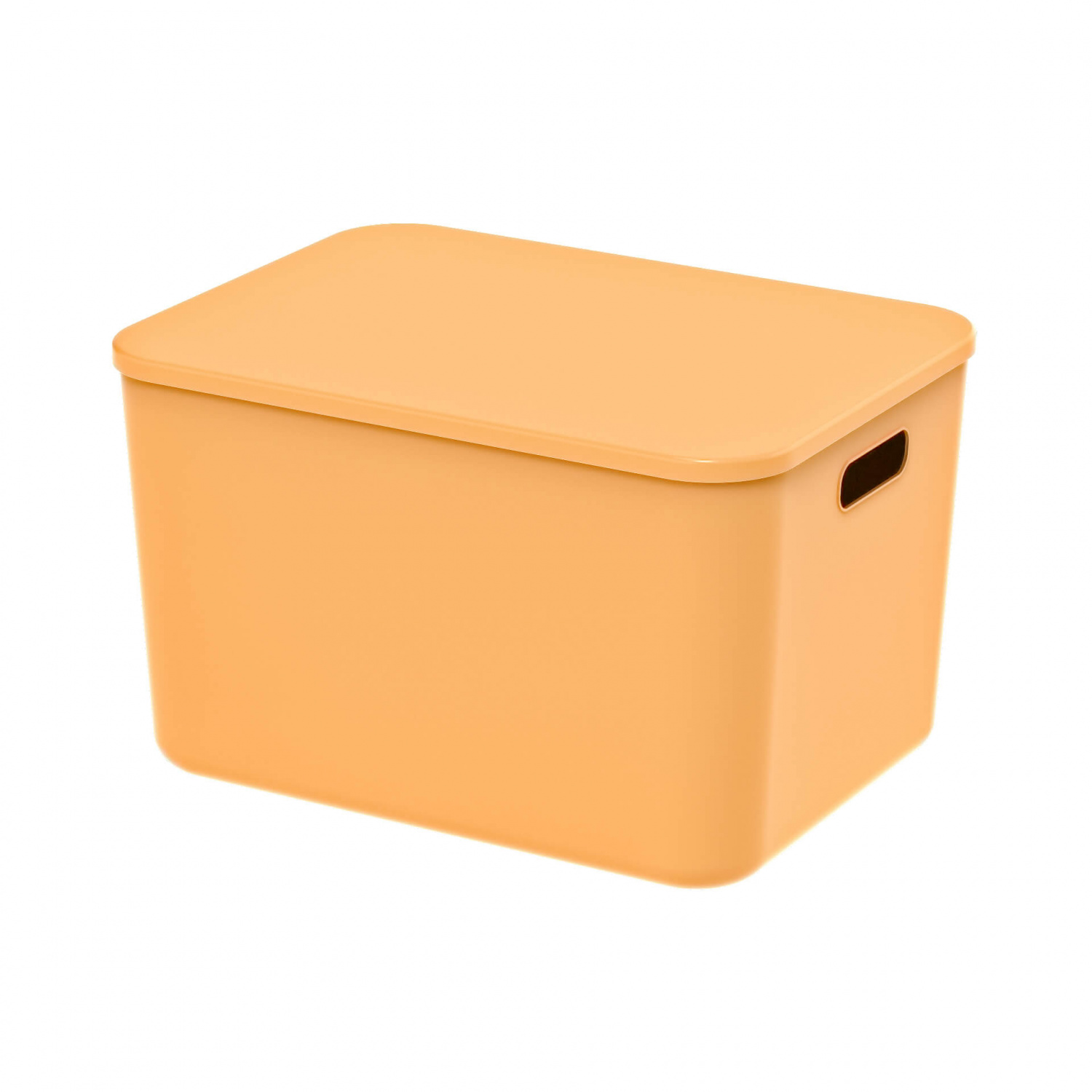 Ящик пластиковый вкладываемый 410х305х245 мм, желтый, с крышкой – удобство и яркость в одном решении
