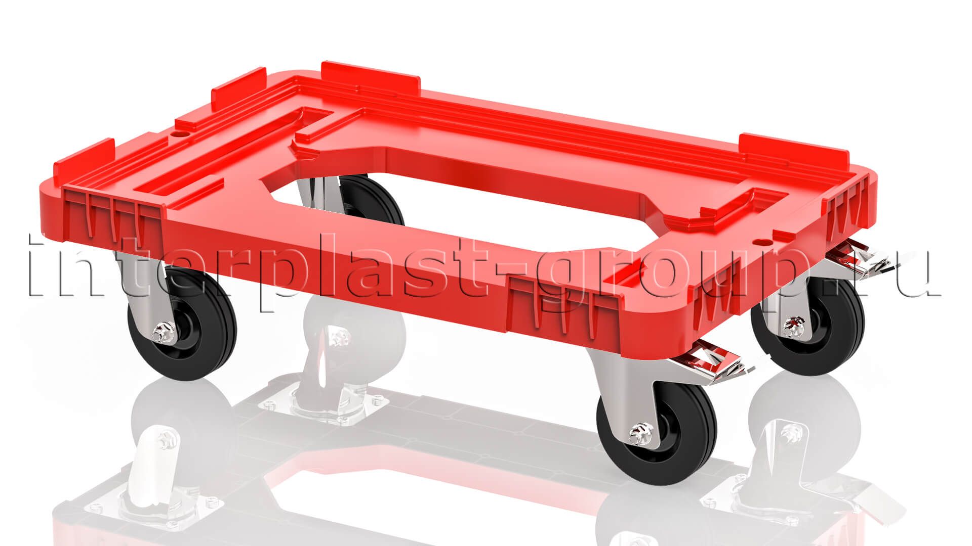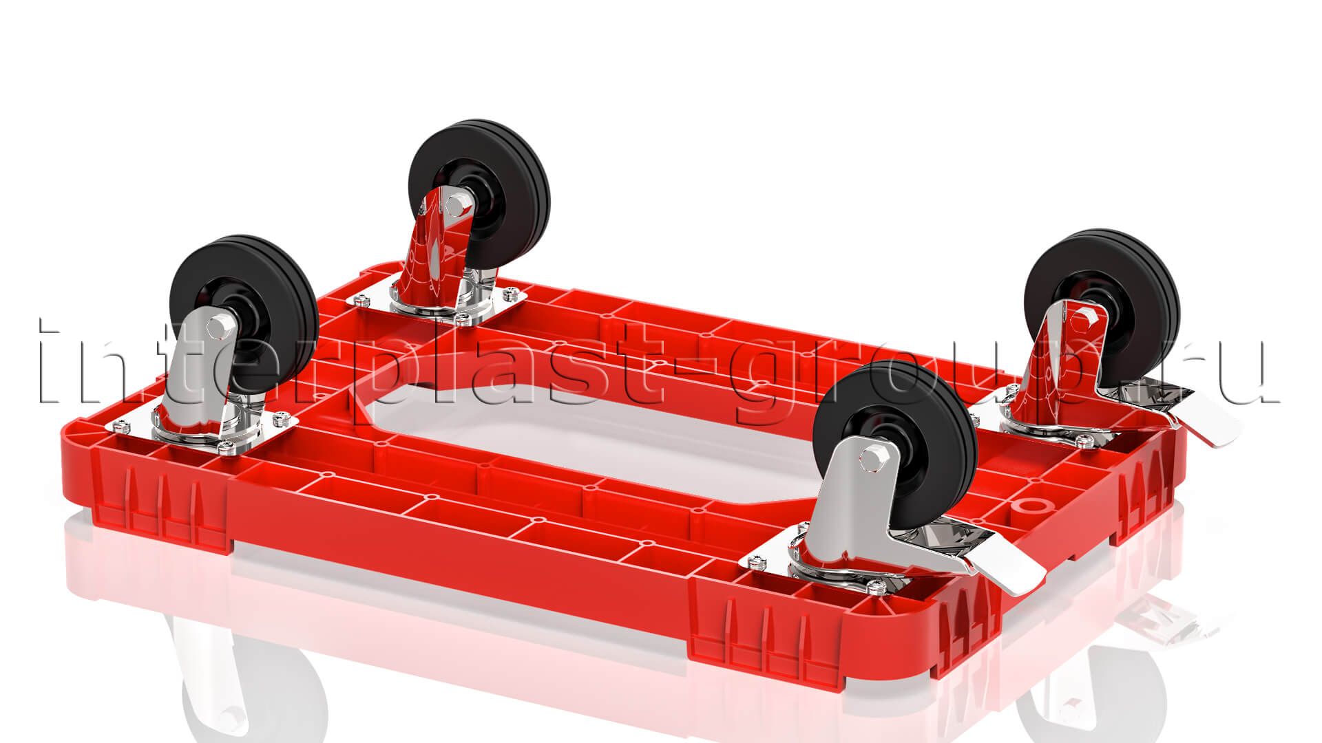 Тележка пластиковая с отверстием 2 колеса с тормозом красная в Иваново